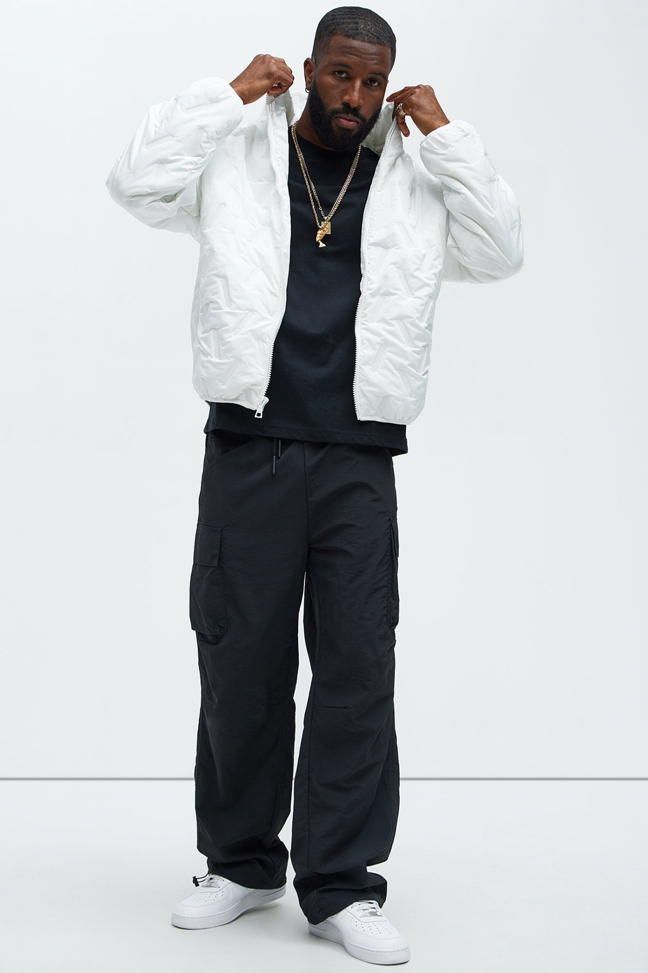 The Everett Hooded Lightweight Puffer Jacket in white delivers versatile insulation for cooler weather without added bulk. Made with lightweight synthetic fill, it offers reliable warmth ideal for transitional seasons, travel, casual outings, urban commuting, or light hiking. The hooded design provides protection from wind and light rain, while the slim fit allows easy layering over shirts or under heavier coats for a modern silhouette.