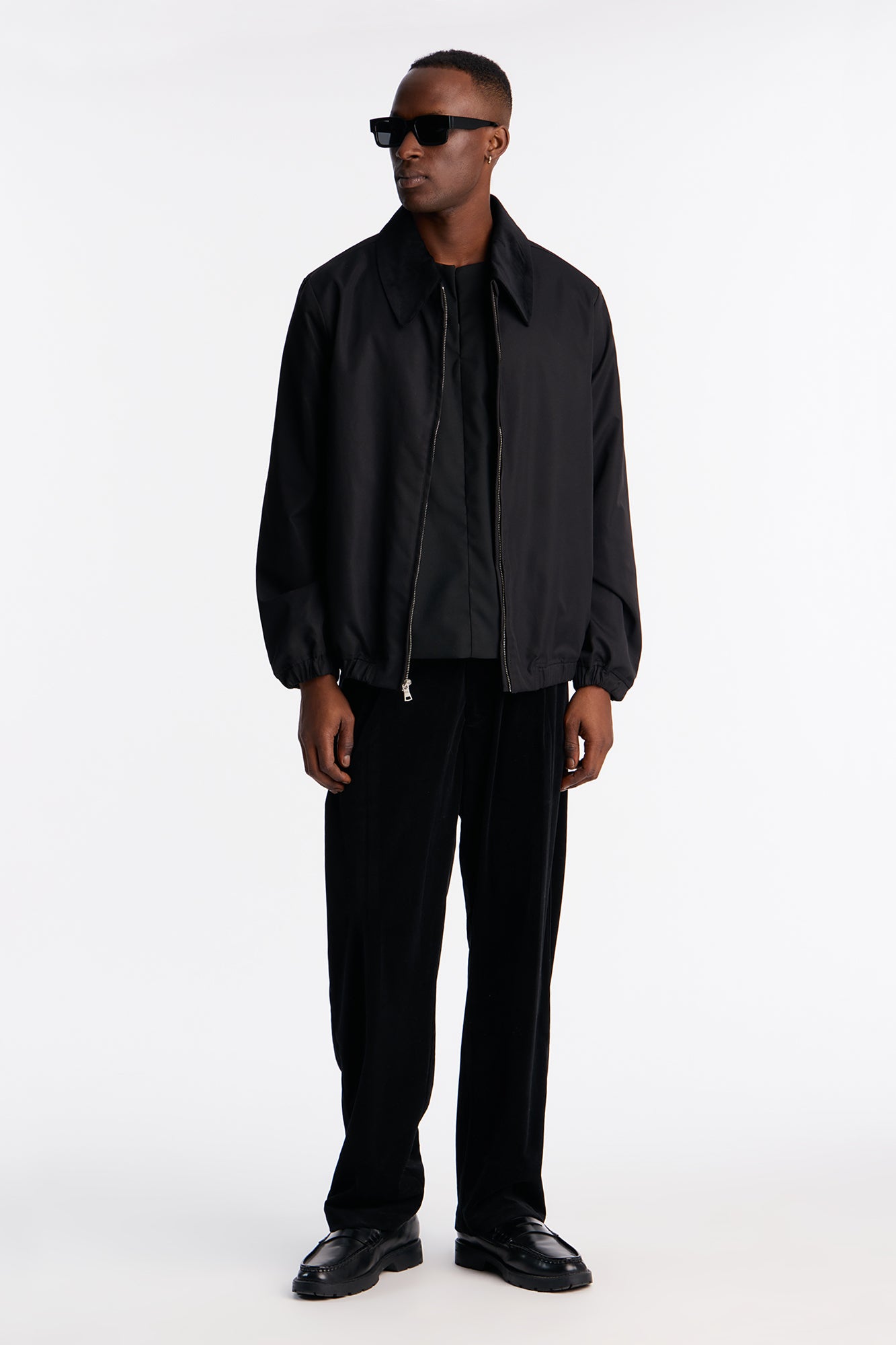 Elevate your wardrobe with the Lincoln Park Textured Collar Bomber Jacket in sleek black. This premium bomber jacket features a distinctive textured collar that adds a touch of sophistication and edge to the classic silhouette. Crafted from high-quality, durable fabric with a water-resistant finish, it offers reliable protection against light rain and wind, making it ideal for transitional weather.