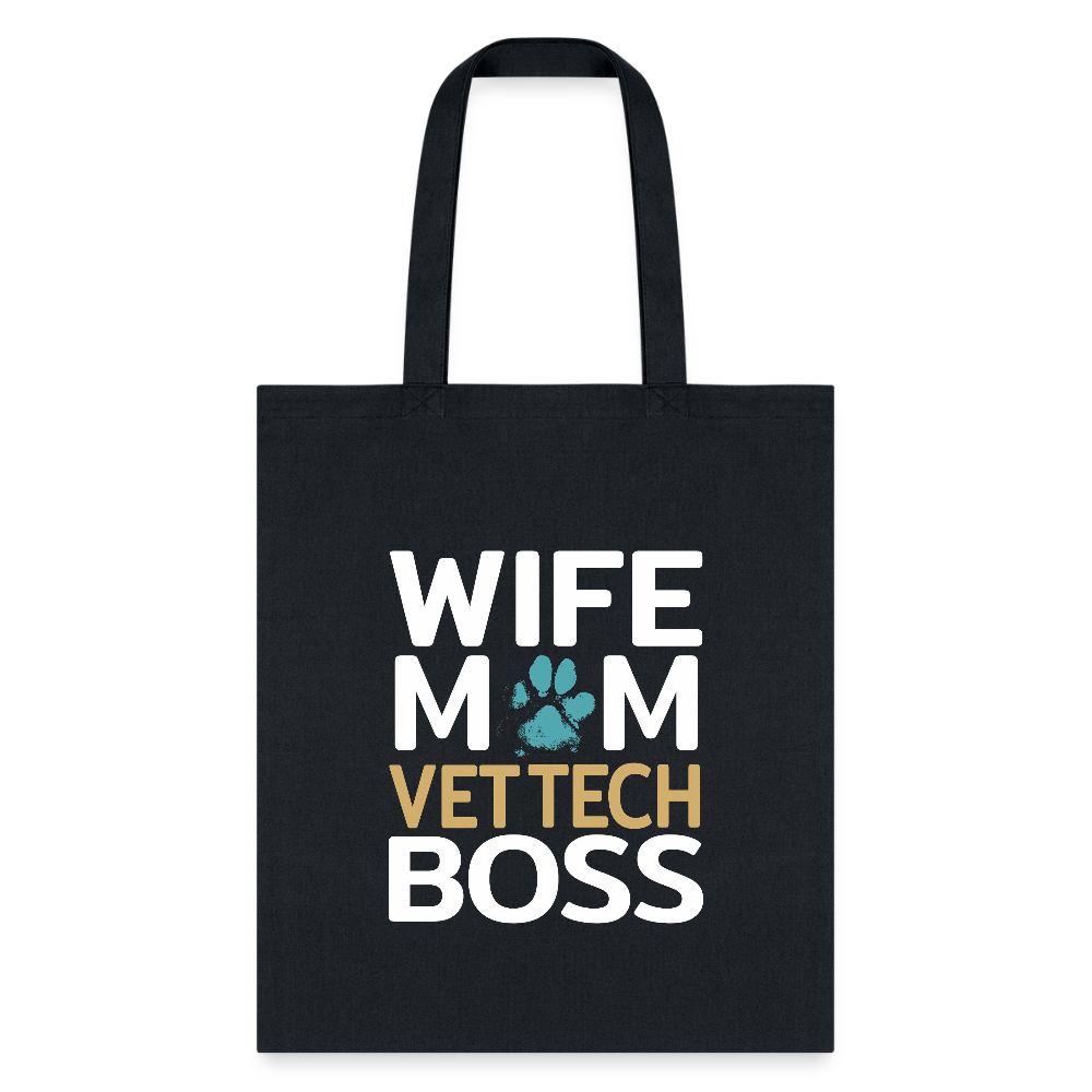 Elevate your daily style with this Wife Mom Vet Tech BOSS Tote Bag, a perfect blend of humor and functionality for busy women who juggle it all. Featuring a bold graphic print that proudly declares ‘Wife Mom Vet Tech BOSS’, this tote showcases your multifaceted life with pride. Crafted from durable, high-quality polyester canvas, it offers sturdy construction to handle groceries, work essentials, vet clinic supplies, or family outings. Spacious main compartment provides ample room for laptops up to 15 inches, books, water bottles, and more. Reinforced handles ensure comfortable carrying, whether over the shoulder or by hand. Ideal for veterinary technicians, moms, wives, and bosses who appreciate witty apparel that sparks conversations. Machine washable for easy care, this versatile tote bag transitions seamlessly from professional settings to casual errands. Embrace your inner boss with a bag that’s as tough and stylish as you are.